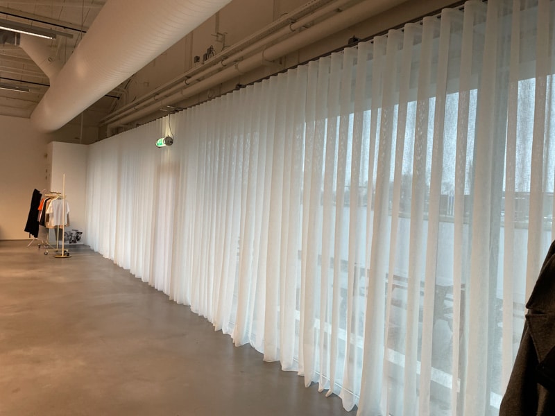 Naast theaterdoeken verzorgden we ook lichte scheidingsgordijnen en vitrages voor moderne werk- en presentatieruimtes. Zoals in deze projecten te zien is, combineren we strakke lijnen met zachte texturen om de akoestiek te verbeteren zonder in te leveren op stijl.
