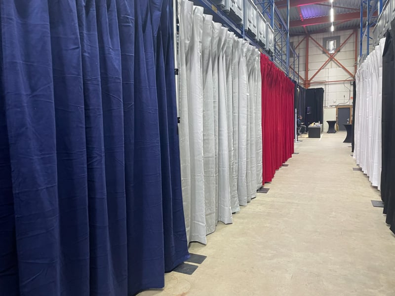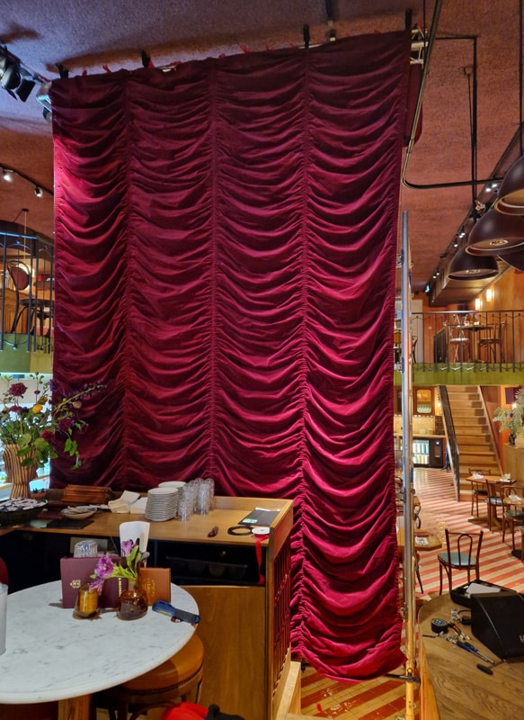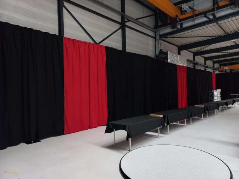 📍 Levering: Theaterdoeken, vitrages, greenscreen en akoestische scheidingsgordijnen
